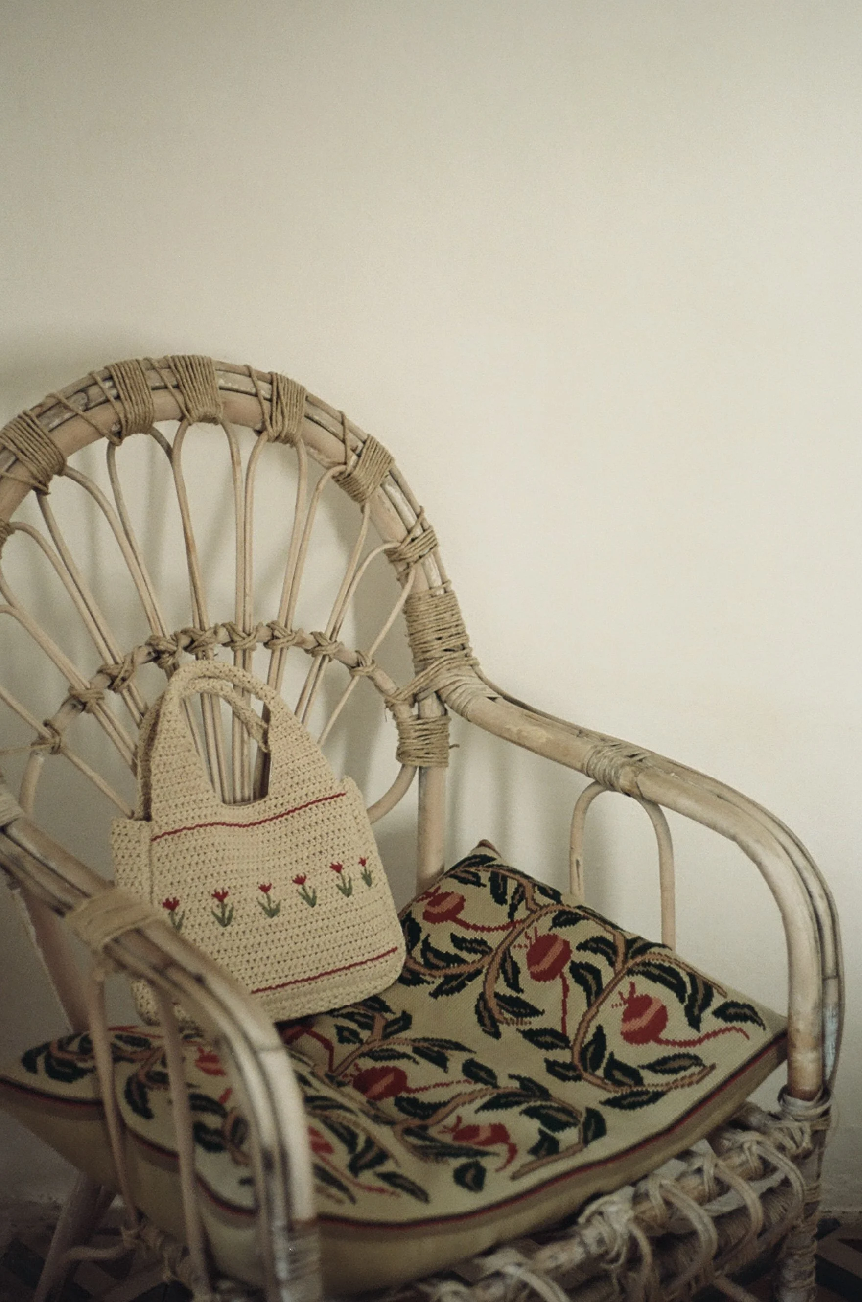 Crocheted handbag in 100% cotton with stylized and hand embroidered tulip flowers.